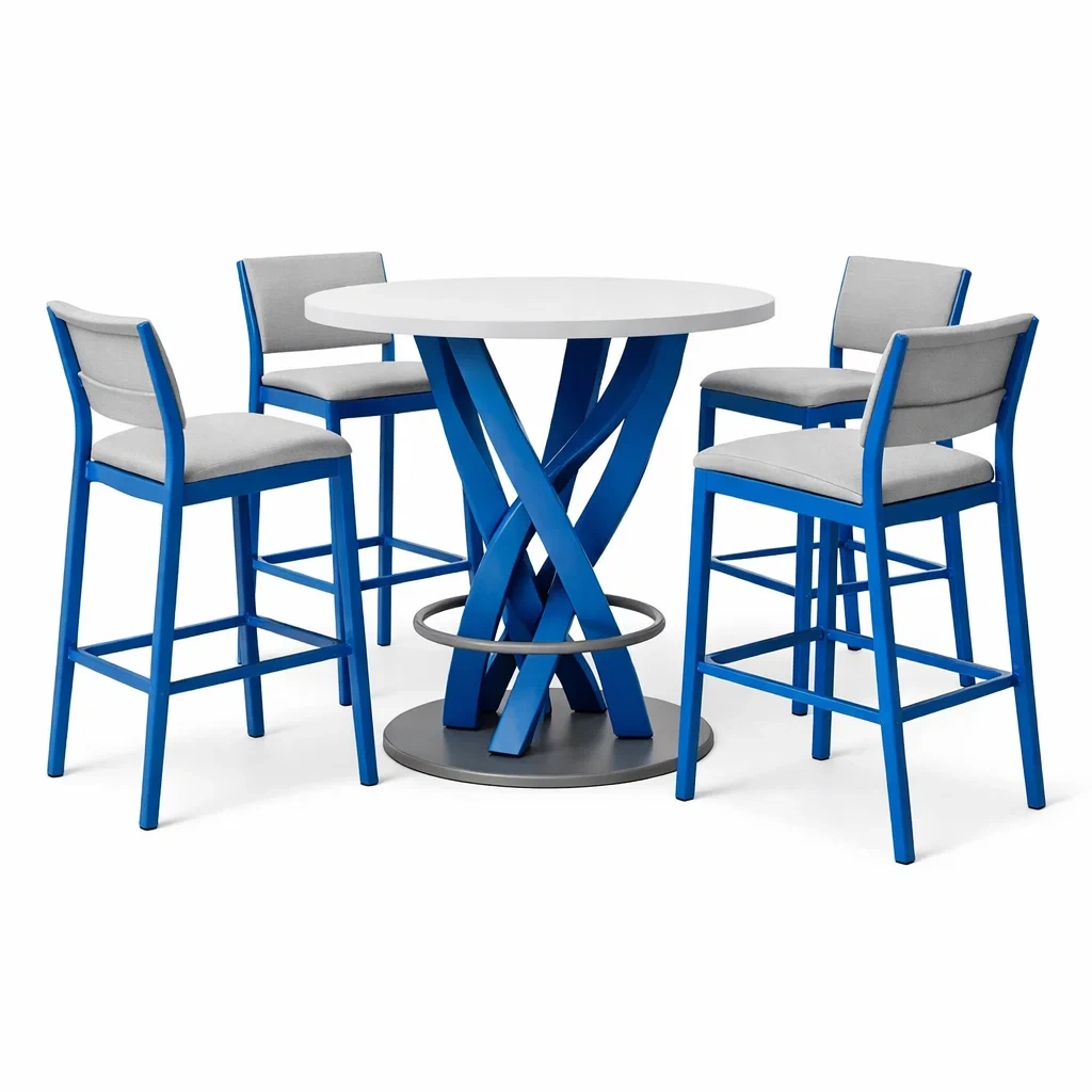 Set tavolo e sgabelli da bar in Alluminio Blu con Quattro Sgabelli in Tessuto Azzurro